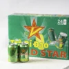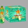 Bao bì thùng được thiết kế hiện đại với gam màu xanh trắng chủ đạo, biểu tượng ngôi sao vàng nổi bật – khẳng định chất lượng và uy tín thương hiệu GOLD STAR. Bên trong là các chai trà xanh dung tích tiêu chuẩn, đóng gói chắc chắn, đảm bảo an toàn khi vận chuyển và bảo quản.